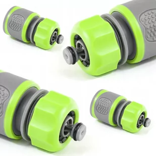 Szybkozłącze przelotowe 1/2" z funkcją STOP Stalco S-80405 służące do łączenia węży ogrodowych. Produkt wykonany z tworzywa ABS pokrytego gumą termoplastyczną TPR.