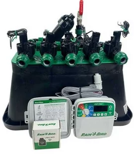 Zestaw do automatycznego nawadniania studzienka 5 elektrozaworów Rain Bird, sterownik ESP-TM2 Zestaw do samodzielnego montażu według schematu ukazanego na zdjęciu. Nie wymaga użycia dodatkowych narzędzi np. kluczy hydraulicznych. Jeśli nie jesteś pewny czy ten właśnie zestaw jest odpowiedni do twojego ogrodu, możemy przygotować indywidualny projekt nawodnienia. Zestaw zawiera :