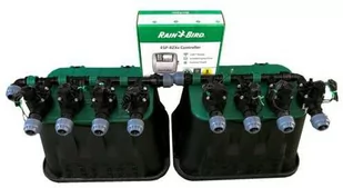 Zestaw do nawadniania 8 sekcji Rain Bird W zestawie do automatycznego podlewania (8 sekcji) znajdziemy: 8 elektrozaworów Rain Bird Sterownik wewnętrzny 8 sekcji Rain Bird ESP- TM2 Indoor Studzienka zaworowa standard 2 szt Kolektor trójnik 7 szt Kolektor kolanko 1 szt Przelot 25x1" GZ 9 szt. Przelot 25x1" GW 1szt. Kolano 25x1" GZ 1szt. Montaż zestawu Rain Bird 8 sekcji Montaż można wykonać według schematu pokazanego na zdjęciu.