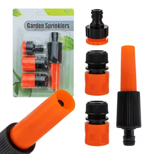 2 x Złączka 1/2’’ 1 x Przyłącze do kranu 3/4’’ lub 1/2’’ (adapter) 1 x Zraszacz Specyfikacja: Kolor: czarny, pomarańczowy Materiał: tworzywo sztuczne W opakowaniu: 4 szt.
