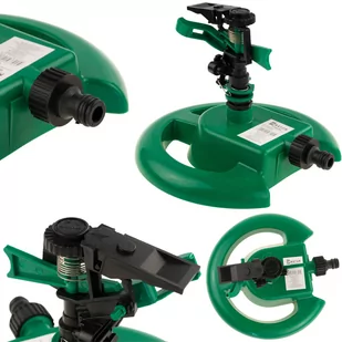 Specyfikacja: ☑️ wymiary: wymiar całego zraszacza: 22cm x16cm, wymiar podstawy: 20cm x 6cm, ☑️ zasięg oprysku do 24 m średnicy, ☑️ kolor: