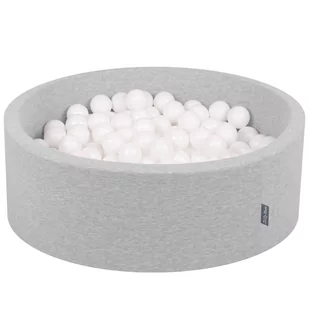 KiddyMoon Suchy basen okrągły z piłeczkami 7cm jasnoszary: biały 90x30cm/300piłek Zabawka basen piankowy
