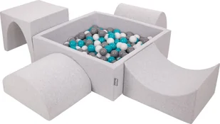 KiddyMoon KiddyMoon Piankowy plac zabaw PPZP-KW30D-135 z piłeczkami jasnoszary: szary-biały-turkus basen 300/górka/tunel/rampa L/półwałek L Zabawka plac zabaw