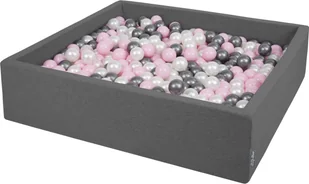 KiddyMoon KiddyMoon Suchy basen kwadratowy z piłeczkami 7cm 120x30 ciemnoszary: perła-pudrowy róż-srebrny 120x30/1000piłek Zabawka basen piankowy