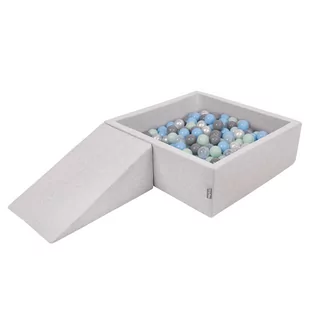 KiddyMoon Piankowy plac zabaw PPZP-KW30D-112 z piłeczkami jasnoszary: perła-szary-transparent-babyblue-mięta basen 200/klin L Zabawka plac zabaw