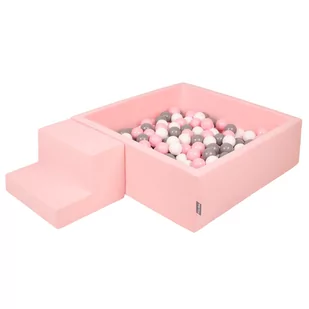 KiddyMoon Piankowy plac zabaw PPZP-KW30D-122 z piłeczkami różowy: biały-szary-pudrowy róż basen 100/schodek Zabawka plac zabaw