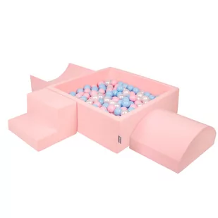 KiddyMoon Piankowy plac zabaw PPZP-KW30D-134 z piłeczkami różowy: babyblue-pudrowy róż-perła basen 300/rampa L/półwałek L/schodek Zabawka plac zabaw