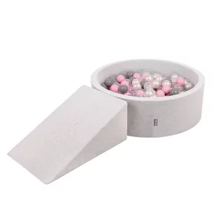 KiddyMoon Piankowy plac zabaw PPZP-OK30D-112 z piłeczkami jasnoszary: perła-szary-transparent-pudrowy róż basen 100/klin L Zabawka plac zabaw