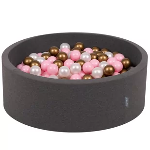 KiddyMoon Suchy basen okrągły z piłeczkami 7cm ciemnoszary: pudrowy róż-perła-złoty 90x30cm/300piłek Zabawka basen piankowy