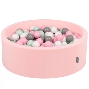 KiddyMoon Suchy basen okrągły z piłeczkami 7cm różowy: biały-szary-mięta-pudrowy róż 90x30cm/200piłek Zabawka basen piankowy