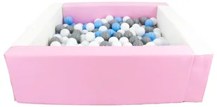 Kwadratowy suchy basen z ekoskóry z 300 piłeczkami (biały, różowy (pastel)/biały, jasnoniebieski, szary)