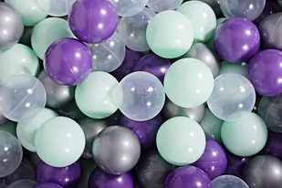 MEOWBABY Zestaw Plastikowych Piłeczek 7cm dla Dzieci, Kulki do Basenu 50szt.: Fioletowe/Miętowe/Srebrne/Transparentne