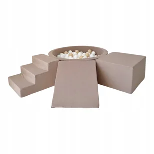 Piankowy Plac zabaw 3 el. + Basen z kulkami - specyfikacja: Zestaw składa się z 4 elementów: 3 klocki piankowe i 1 basen z kulkami 30x90 cm (suchy basen zawiera w zestawie 200szt. piłek). Piłeczki można dowolnie wybrać spośród dostępnych kolorów - zdjęcie piłeczek znajduje się w galerii -Materiał: