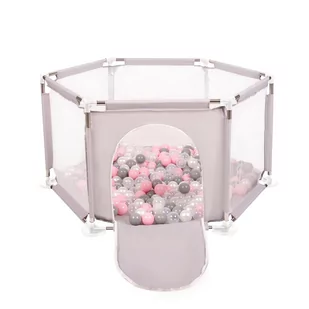 Selonis Sześciokąt składany KS-100X z piłeczkami 6cm szary: perła-szary-transparent-pudrowy róż 63x64/200piłek