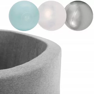 Suchy basen z piłeczkami kulkami, Misioo, bawełniany szary, 90x30 cm, 300 piłek: miętowe, srebrne, perłowe
