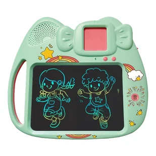 ♥ Tablet do rysowania znikopis Czytnik kart do nauki języka angielskiego 2w1 112 kart dwustronnych zielony Sun Baby ♥Cechy produktu: ✔️ Wiek: 3+✔️ Zestaw zawiera: Magiczną tablicę z funkcją czytnika kart, rysik, kabel do ładowania USB Typ-C oraz 112 dwustronnych kart do nauki języka angielskiego, instrukcję obsługi✔️ Tablica jest wyposażona w funkcję czytnika kart, która umożliwia interaktywną naukę języka angielskiego✔️ Zestaw zawiera karty z różnorodnym słownictwem, zapewniając szeroki zakres tematyczny i językowy, w tym: Jedzenie, rodzina, instrumenty muzyczne, kraje, prehistoryczne dinozaury, kolory, ciało✔️ Po włożeniu karty do czytnika, tablica odtwarza dźwięk słowa na karcie; dodatkowo czytnik powtarza to samo słowo po naciśnięciu przycisku, co również pomaga w nauce poprawnej wymowy✔️ Funkcja regulacji głośności✔️ 8-calowy tablet, wielokolorowy✔️ Obok tabletu znajduje się przycisk do wymazywania rysunków, pisania✔️ Z tyłu tabletu znajduje się uchwyt na rysik✔️ Nauka poprzez zabawę, która motywuje i zachęca dzieci do samodzielnej nauki✔️ Tablet wspiera dzieci w samodzielnym odkrywaniu i uczeniu się nowych słów, co zwiększa ich motywację do nauki✔️ Interaktywna forma przyspiesza proces nauki słownictwa poprzez zaangażowanie różnych zmysłówMagiczna tablica z funkcją czytania z kart to innowacyjne narzędzie edukacyjne, które łączy zabawę z nauką języka angielskiego. Zaprojektowany dla dzieci w wieku od 3 lat, zestaw zawiera magiczną tablic ę z czytnikiem kart, rysik, kabel USB typu C do ładowania i 112 dwustronnych fiszek.