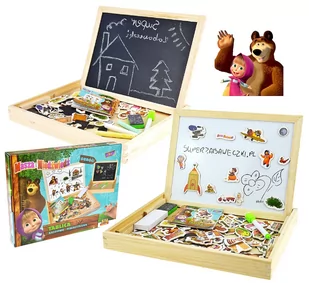 Układanka magnetyczna z tablicą ćwiczy pamięć, wyobraźnię uczy cierpliwości rozwija zmysł koncentracji, zdolności manualne i plastyczne. Na białej tablicy można pisać markerem, oraz układać kolorowe magnesy tworząc rozmaite obrazki. Na stronie czarnej dzieci mogą rysować kredami. Dzięki takiej wszechstronności jakie zapewnia zabawa z tą układanką dzieci spędzą na zabawie wiele godzin. Cała zawartość znajduje się w solidnej drewnianej skrzynce, która jest jednocześnie podpórką tablicy jak i opakowaniem.