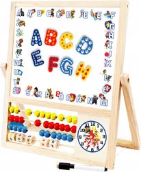 Jest również przyrząd wspomagający naukę liczenia - liczydło z kolorowymi kulkami! Z jednej strony jest to tablica magnetyczna do pisania markerami, z drugiej - tradycyjna tablica kredowa. Dołączone do zestawu kredy, mazak oraz magnetyczne literki zapewnią zabawę na długie godziny. Tablicę po zakończonej zabawie można wytrzeć gąbeczką, którą znajdziesz w opakowaniu. Tablica wpływa na rozwój i zdolności artystycznych dziecka. Do pisania, rysowania, liczenia i kreatywnego tworzenia.