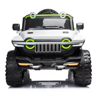 AUTO NA AKUMULATOR 100KG PILOT SKÓRA 4x4 ŚWIATŁA 2 OSOBOWE 4 SILNIKI DLA DZIECI - SZARY