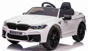 Specyfikacja BMW M5 DRIFT Silnik 2 x 25000RPM Akumulator 2x12V/7Ah Pilot 2. 4 GHz, 3 szybkości, Przycisk bezpieczeństwa STOP, Koła Przód : piankowe koła EVA, Tył : plastikowe do funkcji DRIFT 25 x 9 cm, Biegi Wolny Start, Przód/Tył, 2 szybkości Światła LED, Światła przednie, Światła tylne, Włącznik świateł Wyposażenie Panel Audio MP3, Wgrane melodyjki, Przyciski z melodyjkami i klaksonem, USB, Wskaźnik Naładowania Tak Start Włącznik z odgłosami silnika, Siedzenie Sportowe siedzenie, 34cm x 21cm x 30cm, Basy bezpieczeństwa Otwierane drzwi Tak + blokada, Uchwyt transportowy Rączka + dodatkowe kółka Wymiary Rozmiar Pojazdu Długość 126 cm, Szerokość 73 cm, Wysokość 53 cm, Waga Pojazdu 25,5 kg, Rozmiar Kartonu 126,5 x 63,5 x 37 cm, Waga Kartonu 31 kg, Maksymalne Obciążenie 30 kg, Prześwit 12 cm, Wyposażenie Dodatkowe Instrukcja + Zestaw Montażowy Ładowarka Pilot R/C FUNKCJA DRIFTU