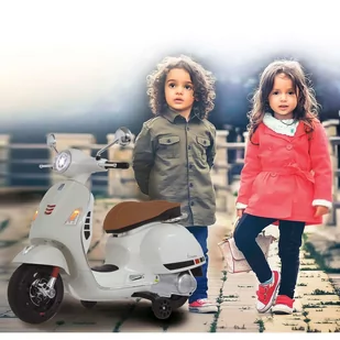 Jamara 460346 - Ride-on Vespa biały 12 V - wydajny silnik napędowy i akumulator do długiej jazdy, gniazdo kart SD, złącze Aux i USB, gumowy pierścień ultra-grip na kole, kółka podporowe, reflektor LED