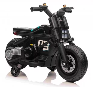 MOTOREK NA AKUMULATOR W KOLORZE CZARNYM Napęd: 1 silniki 25W Akumulator: 6V4AH Oświetlenie przód Biegi: przód - tył Boczne kółka Siedzenie: Plastik Koła: Pla...