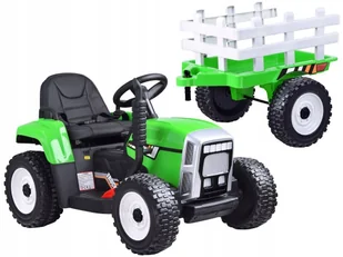 Traktor z Przyczepą na Akumulator 2 Silniki 12V Ekoskóra Koła EVA Zielony