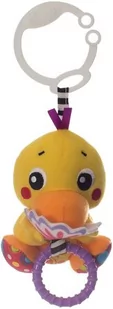 PLAYGRO Wibrująca kaczuszkaOpis: Wibrująca kaczuszka to świetny towarzysz podróży. Dzięki praktycznemu klipsowi można przymocować zabawkę do wózka lubfotelika samochodowego. Wielokolorowa kaczuszka będzie bujać się w trakciejazdy. Pociągnij za krążek i obserwuj jak kaczuszka wibruje.
