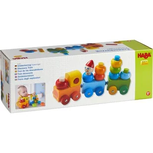 Podczas zabawy kolorowym pociągiem już najmłodsze dzieci - poprzez zabawę - ćwiczą koordynację wzrokowo-ruchową i motorykę małą. Zawartość pudełka: 1 lokomotywa, 2 wagony, 14 elementów do nakładania. Pociąg odkrywców HABA kolorowe zawijasy Tut, tut, nadjeżdża pociąg odkrywców z kolorowym ładunkiem. Można go wielokrotnie przestawiać w dwóch wagonach.