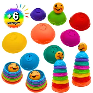PIRAMIDKA dla DZIECI grzechotka składana MISECZKI dla maluchów 6 miesięcy +