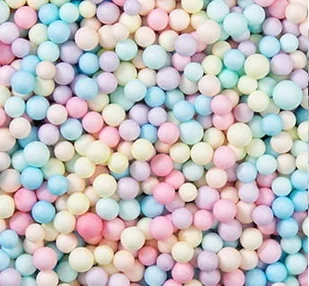 Opis: Kulki dekoracyjne Kolor: Miks pastelowych kolorów Materiał: Styropian Ilość sztuk w opakowaniu: Jedno opakowanie, około 10 gramów Wymiary: Średnica: 4-6mm