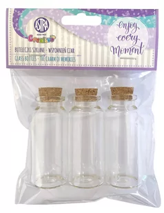 Buteleczki szklane 3 sztuki 30ml - Wspomnień czar. Idealne jako baza do tworzenia ozdób i dekoracji. Buteleczki mają wysokość ok cm i zamykane są naturalnym korkiem.