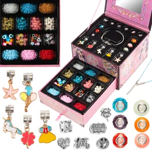 Kreatywność: Zestaw do tworzenia biżuterii DIY ćwiczy umiejętności motoryczne i koordynację ręka-oko oraz zachęca dzieci do cierpliwości. PRAKTYCZNE: Pudełko do przechowywania biżuterii z zestawu koralików ma przegrodę, która zapobiega mieszaniu się koralików, ułatwiając ich tworzenie. JAKOŚĆ: