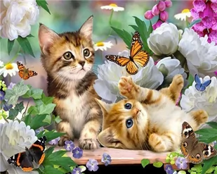 Diamentowa mozaika - Kotki i motyl Haft diamentowy to nowe hobby, które jest połączeniem malowania po numerach oraz haftu krzyżykowego. Jest to znakomita forma spędzania czasu wolnego, pozwalająca się odpreżyć i zrelaksować. Diamond Painting to znakomity prezent na każdą okazję. Diamond painting - haft diamentowy korzyści: Redukcja stresu - odpręża jak medytacja Ćwiczysz umysł - wzmocnienie koncentracji Podnosi zdolności manualne Pomaga rozwijać kreatywność