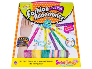 kolorowe gumki, wstążki, sznurki, urocze kwiatuszki, błyszczące kamienie, zapinki, klej i prostą instrukcję, która pokieruje dziecko w tworzeniu. Odpowiedni dla dzieci w wieku 8 lat i więcej. Wymiary pudełka: 24 x 22 x 4,5 cm