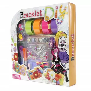 ZESTAW KREATYWNY DO TWORZENIA BRANSOLETEK Idealny zestaw dla każdej kreatywnej dziewczynki. Dzięki temu zestawowi stworzysz mnóstwo niezwykłych bransoletek. Dzięki różnorodnym koralikom bransoletka zawsze będzie inna. W zestawie znajdziesz plastikowe bransoletki, sznurki do wykonania klasycznych bransoletek, koraliki, ozdobne taśmy klejące oraz inne ozdoby. Wymiary opakowania: