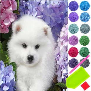 Haft diamentowy 5D 30x40cm mozaika zestaw pies Szpic piesek koraliki obraz
