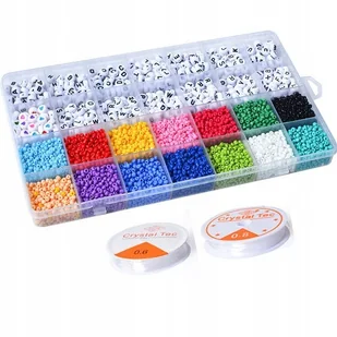 Koraliki literki kolorowe do robienia bransoletek diy beads 3mm zestaw XXL Zestaw zawiera: tysiące koralików w 14 kolorach o średnicy 3mm, setki koralików z ...