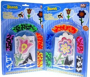 Zestaw 1000 koralików z tworzywa sztucznego (polietylen) do zgrzewania, zabawa polega na ułożeniu na plastikowej formie z wypustkami obrazka z załączonych koralików. Gdy obrazek będzie ukończony, przykrywamy go papierem do pieczenia i zaprasowujemy żelazkiem. Pod wpływem temperatury koraliki stapiają się a, po odklejeniu papieru uzyskamy gotowy obrazek.