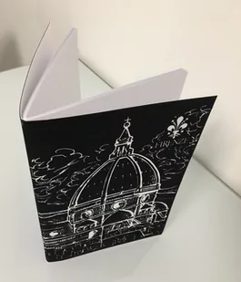 Notatnik z okładką do pokolorowania z welwetowymi w dotyku konturami (pokrytymi czarnym welurem). Łatwiej nie wychodzić za linie, które są wypukłe, a na głębokiej matowej czerni nie widać drobnych potknięć przy kolorowaniu. Można kolorować flamastrami, kredkami, temperami, wszystkim co pisze po papierze. Można stworzyć rewelacyjne efekty za pomocą cieniowania. Rozmiar A5, 80 gładkich stron, gramatura papieru 90 g/m^2.