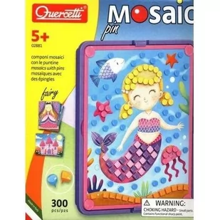 1 koszyk do przechowywania 1 mata do nakłuwania 1 ramka do chwytania 8 kart obrazkowych z motywem z bajki 300 kolorowych kołeczków w 2 kształtach i 6 kolorachGłówne cechy: promuje umiejętności motorycznekoordynację ręka-okokreatywne myślenie Quercetti - Podejście do księżniczki mozaiki to kolorowa i spektakularna gra rzemieślnicza dla dzieci w wieku 5+. W tej grze dzieci mogą wkładać kolorowe kołki do ilustrowanych kart i tworzyć piękne mozaiki. Gra jest dostarczana w poręcznym etui, dzięki czemu wszystko jest łatwe do przechowywania Kolorowa i spektakularna gra rzemieślnicza Odpowiednia dla dzieci w wieku 5+ zawiera ilustrowane karty i kolorowe pisaki Poręczne etui do przechowywania Mozaika od firmy Quercetti to doskonały pomysł na kreatywną zabawę dla wszystkich dzieci. Podczas układania kolorowych elementów mali artyści wyczarują przepiękne mozaiki z bajkową syrenką.