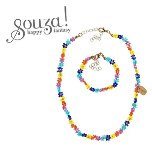 Souza! Zestaw naszyjnik i bransoletka kwiatki z koralików niebieski Millie. Biżuteria. Naszyjnik i bransoletka Millie holenderskiej marki Souza! to zestaw biżuterii z kolorowych koralikowych kwiatków Bransoletka ma 14 cm obwodu, a naszyjnik – 34 cm Posiadają zapięcia i są wygodne do. . .
