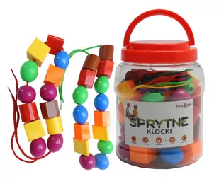 - duża liczba elementów – komplet zawiera 40 różnokolorowych elementów w różnych kształtach - atrakcyjna kolorystyka – klocki wykonane są w 7 kolorach (niebieskim, żółtym, zielonym, pomarańczowym, różowym, brązowym i czerwonym), dzięki czemu można tworzyć ciekawe wielokolorowe kompozycje - praktyczny pojemnik – komplet znajduje się w zakręcanym pudełku Seria Sprytne klocki to klocki konstrukcyjne o różnorodnych strukturach, kształtach i sposobach łączenia.