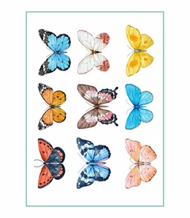 Zestaw tatuaży zawierający lekkie, kolorowe motylki z rozłożonymi skrzydłami. Wielkość wzorów pozwala na ich aplikację zarówno na skórze dzieci, jak i dorosłych. Arkusz naklejek na ciało składa się z niepowtarzalnych grafik, które kojarzą się z wiosną, przyrodą i przywołują słoneczne wspomnienia. Motylki sprawdzą się jako ozdoba ciała podczas eventów oraz zabaw w klubie malucha. Przed aplikacją tymczasowego tatuażu wykonaj próbę alergiczną na niewielkim fragmencie ciała.