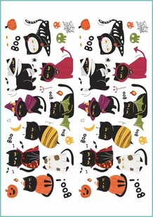 Urocze tatuaże zmywalne z naburmuszonymi czarnymi kotami w przebraniach na Halloween. Zabawne mruczki spodobają się zarówno dorosłym, jak i dzieciom. Przed aplikacją tymczasowego tatuażu wykonaj próbę alergiczną na niewielkim fragmencie ciała. Zapoznaj się również z instrukcją, jak odpowiednio nałożyć tatuaż zmywalny, dołączoną do zamówienia.