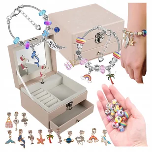 Zestaw Do Robienia Bransoletek Biżuteri Charms Szkatułka Pozytywka Koraliki ⭐ Kreatywny zestaw do robienia bransoletek i naszyjników z zawieszkami dla dziewc...