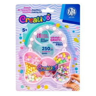 Zestaw koralików Motyl 250szt + 2m gumek ASTRA - ASTRA papiernicze