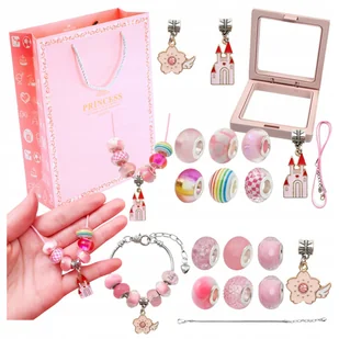 Zestaw kreatywny Różowa biżuteria DIY bransoletka naszyjnik charms koraliki