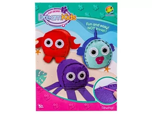 Bezpieczna zabawa Maskotki DIY wykonane zostały z przyjemnych materiałów. Poszczególne elementy posiadają już wycięte otwory na igłę, dzięki czemu zszywanie to czysta przyjemność. Plastikowa, duża igiełka nie jest ostro zakończona, dzięki czemu jest przede wszystkim bezpieczna ale i wygodna w użytkowaniu dla małych rączek. Nasze maskotki to kreatywne zabawki, które wspierają rozwój Twojego dziecka oraz ćwiczą cenne umiejętności a przede wszystkim dostarczają mnóstwo frajdy! Zestaw zawiera: elementy materiałów niezbędne do wykonania trzech zabawek (oczy, macki, płetwy, korpus), nici w różnych kolorach, oczy - guziki na klej, plastikowa igła, wata do wypełnienia pluszaków, oryginalne opakowanie.