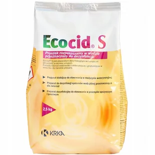 Ecocid® S jako roztwór aktywny jest stosowany w postaci aerozolu, rozpylania, zamgławiania lub kąpieli np. kopyt, a także do stosowania na wszelkich barierach dezynfekcyjnych - np. maty. Do ogólnej dezynfekcji uprzednio oczyszczonej powierzchni i wyposażenia należy przygotować 1 % roztwór Ecocid® S. W tym celu należy rozpuścić zawartość 50 g opakowania w 5 litrach wody. Polecane jest użcie letniej wody w celu szybszego rozmieszania preparatu. Gdy potrzebna jest większa objętość roztworu polecamy użc opakowania 1 kg, które należy rozpuścić w 100 l wody.